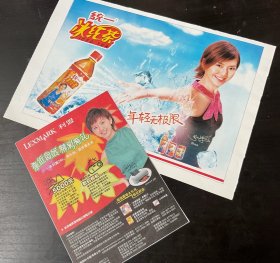 16开2页!新加坡女歌星孙燕姿(印刷签名)2002年利盟打印机广告(17*12.4cm)/2003年统一冰红茶广告(27*18cm)老明星绝版罕见照杂志报纸内页彩页写真照海报