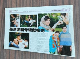 16开单页正反双面多图!新加坡女歌星孙燕姿2003年荧幕初吻独家图文专访报道(背面为田震小图)老明星绝版罕见照期刊杂志报纸内页彩页海报写真照