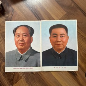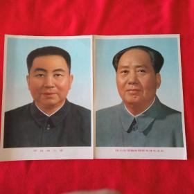 毛主席·华主席像(少见的华国锋主席像,他曾任中共中央主席,军委主席,国务院总理,一举粉碎了四人帮!因华主席在位时间短,画像存世量极少。每张16开,在玻琂框内,光售像,不售像框)