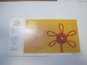 2002年中国邮政贺年(有奖)明信片(2001年12月16日湖南宁远——湖北武穴,盖湖南宁远(平信2)水波纹机盖戳,正面图案:祥和平安,HP2002B(4-2))(85941)