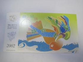 2002年中国邮政贺年(有奖)明信片(2001年12月27日湖北麻城——湖北武穴,盖湖北麻城(平信)水波纹机盖戳,正面图案:前程似锦,HP2002A(4-2))(85938)