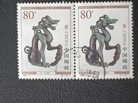 2002壬午马年贺年有奖明信片加印湖南省怀化溆浦县财政局企业金卡东周青铜器神兽尊邮票首发纪念戳南宁2002.12.19平信(筒取)邮戳实寄片
