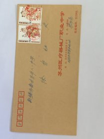 编年邮票实寄封:浙江省三市邮电局、五地集邮协会印制“金温铁路全线通车、集邮联展”纪念封,贴1996-22(4-3)邮票~B枚(温州市邮协98.6.16寄瑞安,上边撕损)