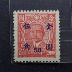 民国普通邮票:普48 孙像烈士像加盖“金圆”改值邮票(二)上海三一加盖(19-6)(中信版)肆角改为伍角