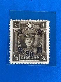 民普48 中信版孙中山像30分加盖金圆50元 解放前民国邮票 上品新票一枚
