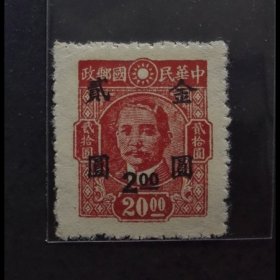 民国普通邮票,民普48,孙中山烈士像加盖红字【金圆2分】(上海大业加盖)全新邮票一枚