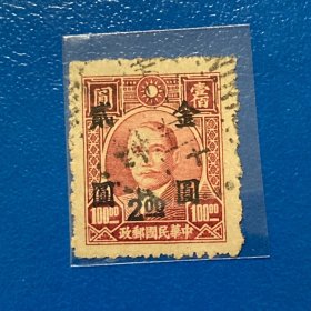 民国普通邮票:普48 孙像烈士像加盖“金圆”改值邮票(一)上海大业加盖(19-4)中信版壹圆伍角改为金圆2分