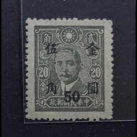 民普48 重庆大东版孙像20元加盖金圆伍角 解放前民国邮票上品新票