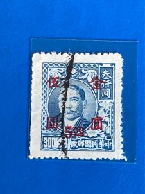 民国普通邮票:普48 孙像烈士像加盖“金圆”改值邮票(一)上海大业加盖(19-5)中信版伍圆改为金圆3分