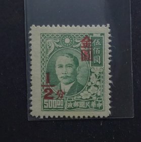 民普48 沪二版孙像500元红字加盖金圆半分 解放前民国邮票上品新票
