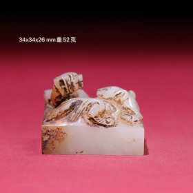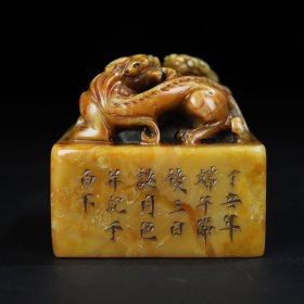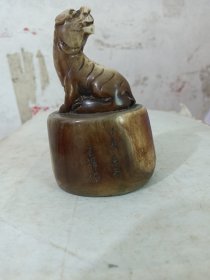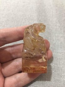 寿山石(生肖 虎)印章,采用原石雕刻,雕刻精美,入刀深邃,石质坚硬 油润,手感圆滑。细节如图,净重218克 尺寸:13.3~2.9~2.9cm