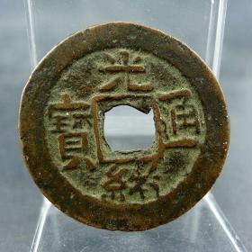 新疆红钱光绪通宝喀十,保真包老,直径2.5厘米。