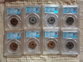 非常少见的新疆红钱八个合售其中两个咸丰重宝当十两个光绪通宝背新十,四个光绪通宝库十,包老包真假一罚十放漏出