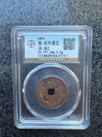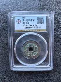 新疆红钱咸丰通宝阿克苏当五(不是当十)保粹评级80分,永久保真