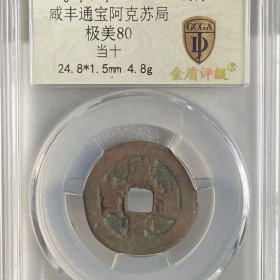 清代咸丰通宝当十新疆阿克苏局当十美品评级币