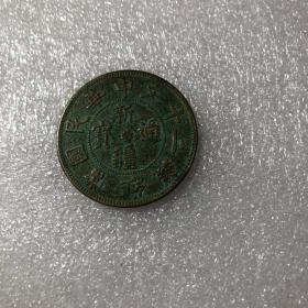 新疆通宝民国元年当红钱二十文背双旗保真保老八级币磨损优惠处理