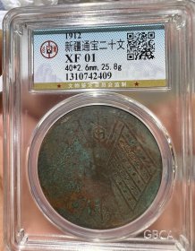 公博评级极美XF01 新疆通宝铜元二十文 大双旗二十文,永久包老保真!