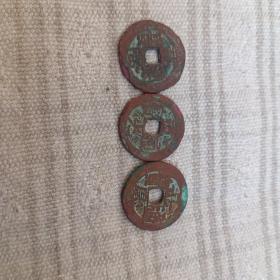 非常稀少的新疆红钱乾道嘉)家一套三枚其中道光通宝背八年当五一枚乾隆通宝山底乾