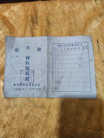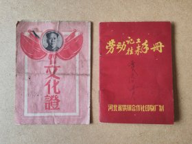 五十年代,清苑县扫除文盲委员会颁发“扫盲文化证”及河北省供销社制发“劳动记工往来手册”空白册