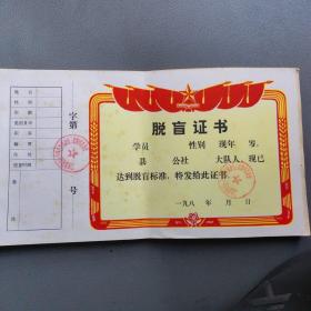 石家庄市人民政府颁发的扫盲文化证