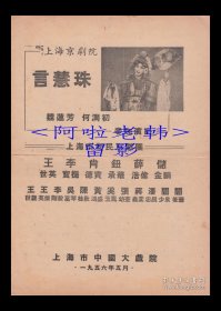 言慧珠/何润初/魏莲芳/李宝櫆/薛浩伟主演 上海京剧院/上海市新民京剧团戏单:《四杰村/文昭关/得意缘/打鼓骂曹/生死恨/嘉兴府/西施》【中国大戏院 16开4页】(20)