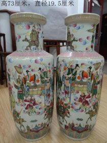 晚清粉彩人物纹嫁妆瓶一对