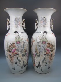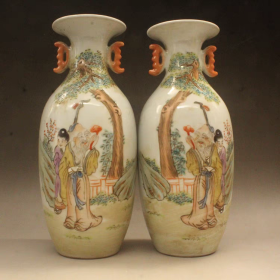 手绘粉彩人物瓶一对