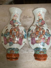 清代粉彩人物壁瓶一对