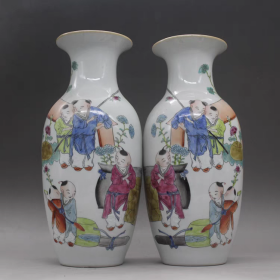 晚清名家绘粉彩婴戏图赏瓶一对