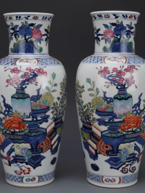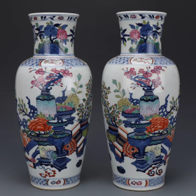 清青花粉彩博古纹观音瓶一对