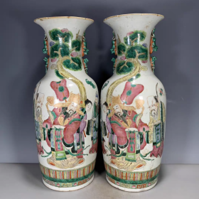 清粉彩人物故事瓶一对