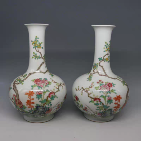 清粉彩花鸟纹观音瓶一对