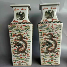 清粉彩龙纹四方瓶一对