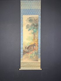 【手绘】秋元华江《林中鹿》7499清代书画挂轴回流茶道茶室字画真迹