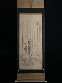 日本回流字画山本养和清代墨鲤4256纸本书画挂轴真迹收藏