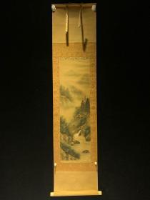 日本回流字画清代湖舟款绢本山水4253绢本书画挂轴真迹收藏