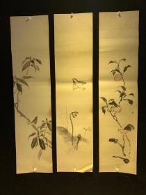 花草鸟雀三幅 回流字画清代民国挂卷轴茶室书房真迹收藏书道