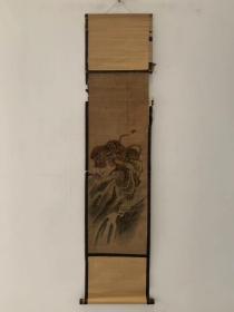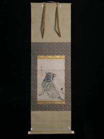 日本回流清代老字画清代猛虎绢本手绘浮世绘挂轴真迹收藏茶室书画