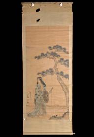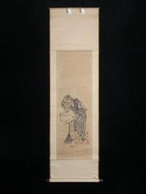 日本回流老字画《清代松下美人》6642书画挂画字画手绘真迹成品