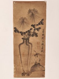 清代书画真迹刘德龙印钤手绘水墨菊花兰花清供图题写苏东坡诗句菊残犹有傲霜枝
