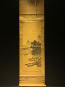 岩崎湖堂山水 古代名画真迹清代书法字画茶室卷轴画书房玄关挂画