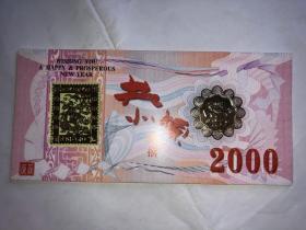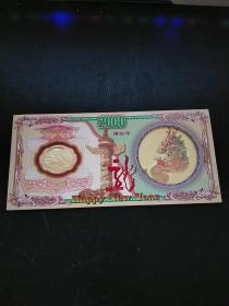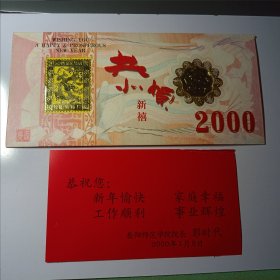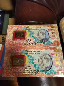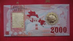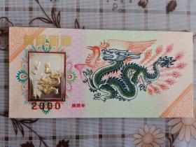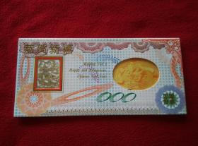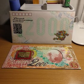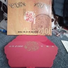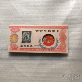 2000年24K镀金镀银双色金属贺岁纪念卡,采用印钞工艺技术,限量发行40000套。沈阳造币厂制造。北京民生泉集币公司监制、总经销。北京印钞厂韩纪宗设计。