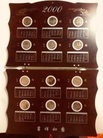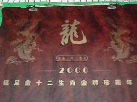 《公元2000年24K镀金珍藏年历》(龙镀金直径4厘米大纪念章11枚千年特制)。少 一枚直径4厘米大纪念章,看图片。精装册规格是30厘米X47.5厘米