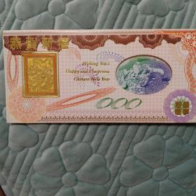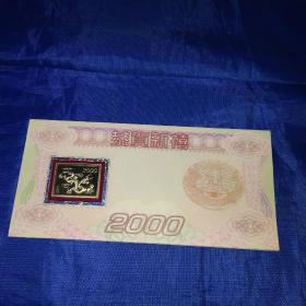 【非常罕见,发行号码,0000000】2000年,庚辰年,恭贺新禧,生肖属相,龙年大吉,蛟龙出海,好运年年,24k镀金、镀银,。贺卡尺寸约22*10.5cm