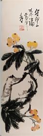 保真书画,李溪境国画画作一幅91×69cm软片,李溪境,原名李喜景,出生于山西省长子县,中国美术家协会会员、天津美术家协会会员、中国扇子学会会员、生态中国书画院研究员。柿子白菜