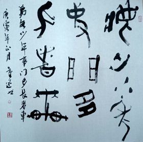 童迅,1959年生,江苏南京人,字正之、茂父,号心斋。现为中国民主同盟盟员、中国书法家协会会员、金石印坊首席艺术顾问、南京印社副秘书长、中国赏石家协会会员、南京民间抗日战争博物馆顾问、南京市书法家协会篆刻委员会副主任、南京颜真卿书画院副秘书长、江苏省甲骨文学会理事等。书法一幅68x68纸本托片。保真包退。