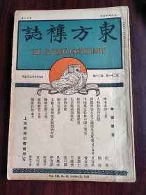 东方杂志第二十一卷第二十号,有兵燹之江苏上海防守司令白寳山和徐州镇守使陈调元和真茹行辕齐燮元和真茹暨南学校苏军司令部和真茹最后的防线和劫掠焚烧之南翔和南翔监理公會之难民和兵燹后之广州普济桥和太平街和迴澜街和第八甫市街。日俄关系之难产等图片。北京政局变化和浙东独立事件的经过和广州商团的大失败和人格教育与民德和中俄协定给与中国之利害和梅嶺之春和北票煤矿调查记和吴稚晖的国音沿革序和整理我国幣制管见等文章