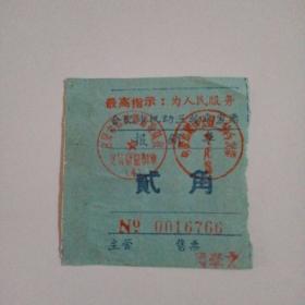 南京市 白下区三轮车票 贰角