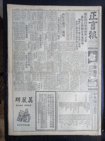 1948年8月28日 正言报:孔子诞辰纪念会中枢隆重举行,彻底实行财政经济方案翁院长将亲赴各督导,战时被略铜元镍币我潜三轮赴日载运,体育新闻大量民国体育消息有照片,文庙祀孔典礼昨隆重举行,湖社纪念大会提迫切要求,文汇报仍守独立的政策,舒月桥《百货职工子弟学校创办者的呼声》,缺版特价,介意慎拍,还价勿扰