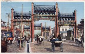 民国初1912实寄明信片-东四牌楼-人力拉车改为蹬三轮车拉客